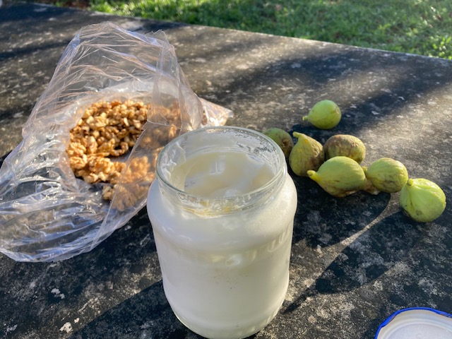 It was for their breakfast. They told us they were cow farmers, and just sold their business, so no more home made yoghurt for them last few weeks. I think their yoghurt was even better because they always used their fresh milk. Here in Portugal we buy sterilised milk. Sometimes they have a package fresh in the fridge but not all supermarkets have that.