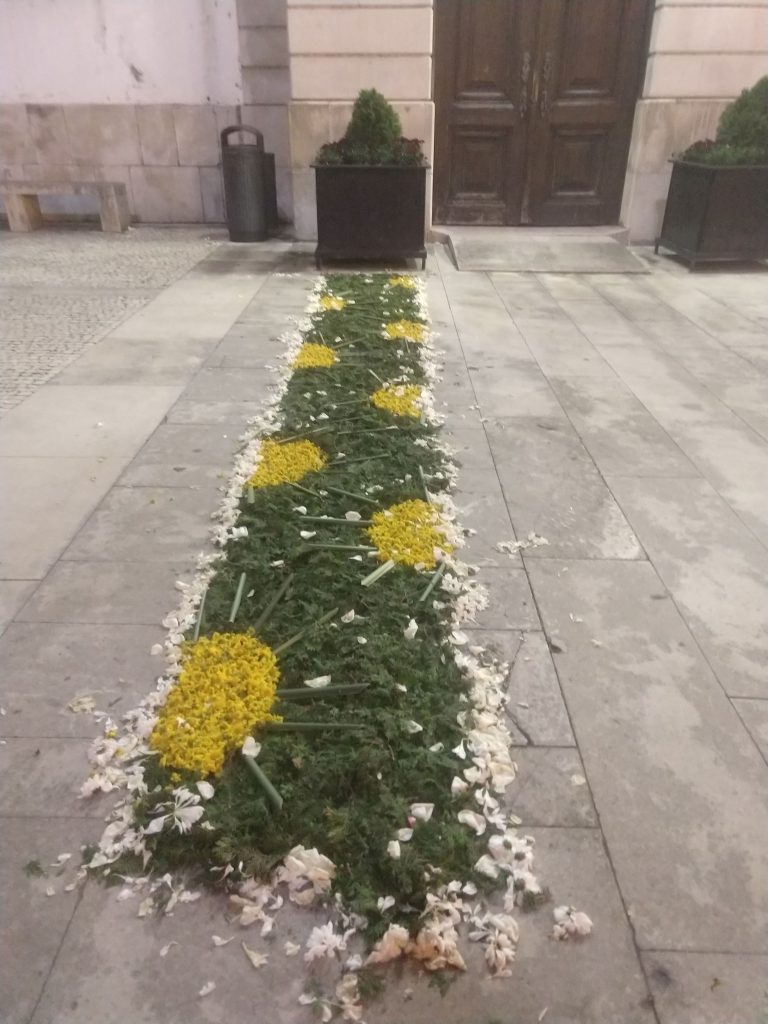 25 April is a big day here in Portugal. There is flower art on the floor and it stays like this for a ouple of days!