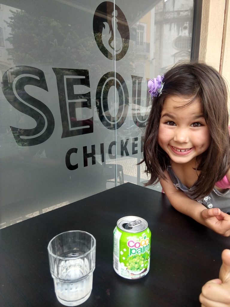 We are fan of Asian food. Because it is so hard to get here, we regularly go to Korean place at Praca de Commercio. At Seoul Chicken on the opposite side you have very nice fried chicken and Kimbab with tofu, also to take home. But we sit at across this fast food place and eat at Gangnam where we eat noodles, rice or Korean BBQ and the Kimbap, this is a Korean Sushiroll.