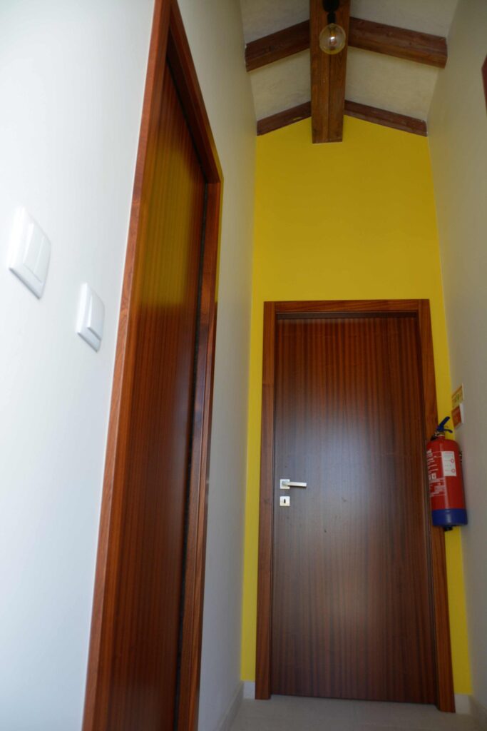 Entrance with bathroom and toilet doors and the door to room.