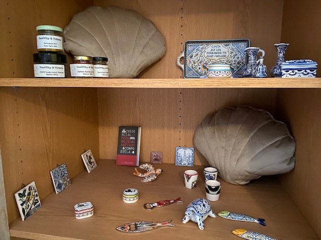 Guests and pilgrims really liked our pen with the Santiago shell and the pillow in a shell form. So we bought more of them. Some pilgrims bought the sardine magnet bottle opener. Ask us, we could have them for you! On our small touristic days out in Portugal we find nice Portuguese stuff for you. You will not have time to find these special things easily.